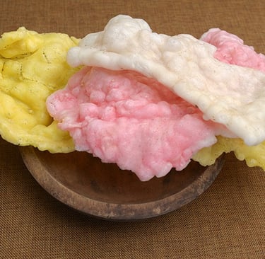 Kerupuk Pasir tersedia dalam berbagai warna cerah seperti kuning, merah, dan hijau. Warna-warna ini tidak hanya menambah daya tarik visual, tetapi juga membuat kerupuk ini semakin disukai oleh semua kalangan, dari anak-anak hingga orang dewasa. Rasa gurih dan renyah yang dihasilkan dari proses penggorengan dengan pasir memberikan sensasi makan yang memuaskan.