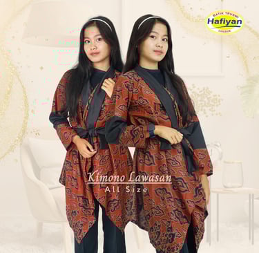 Satu lagi model baju batik wanita yang flexibel banget jika dipakai. Outer kimono lawasan motif mega mendung menjadi salah satu pilihannya.