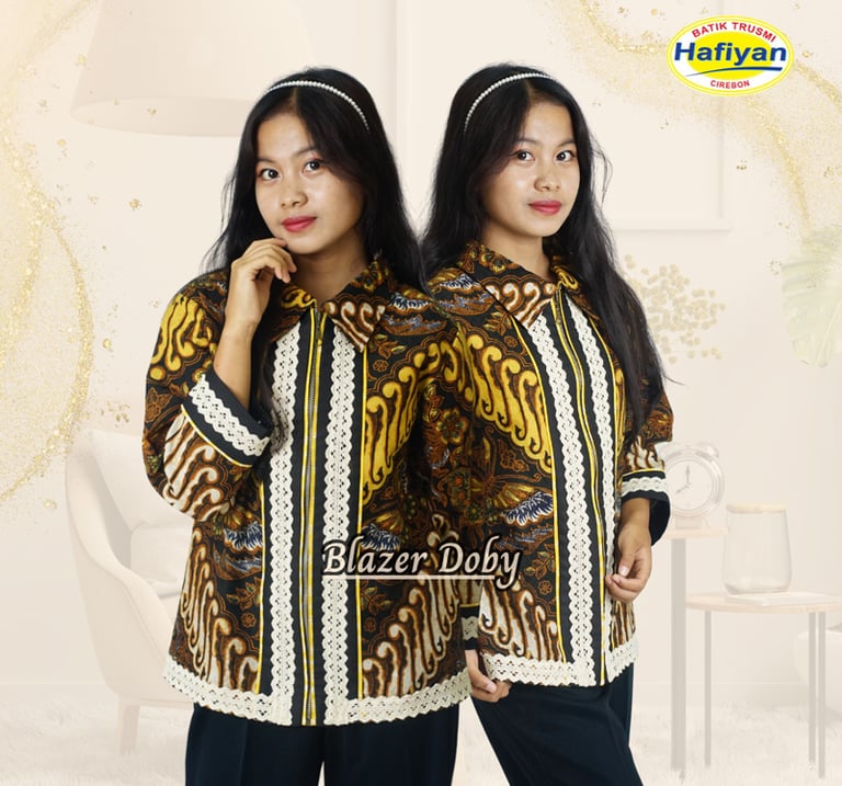 Blazer doby ini bisa menjadi salah satu opsi pilihan model baju batik wanita untuk ke kantor maupun hang out. Dilengkapi dengan retsleting serta aksen renda di setiap sisinya menghilangkan kesan monoton pada desain blazernya. Bisa dipadupadankan dengan celana bahan untuk kerja atau celana jeans dan inner warna senada untuk hangout.
