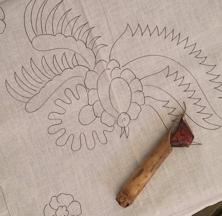 Yang pertama kita siapkan untuk belajar membatik adalah sketsa atau gambar di atas kain yang akan kita lapisi dengan malam panas. Sketsa bisa digambar sesuai dengan kreativitas dan kebutuhan individu. Sketsa bisa dibuat pada selembar kain, totebag, tas, dan produk-produk berbahan dasar kain polos berwarna cerah dan sangat bisa diolah pada proses pembatikan selanjutnya.